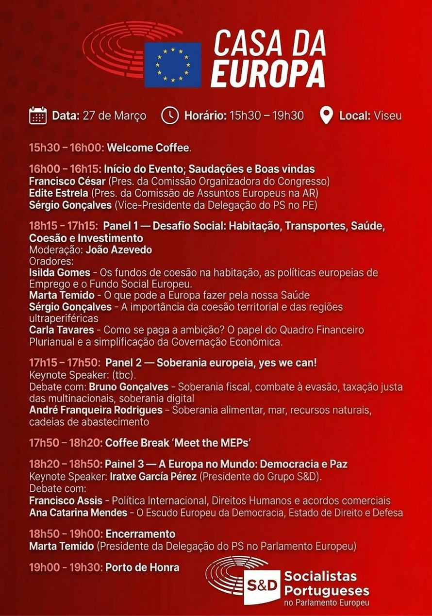 Ao reunir decisores nacionais e europeus, este evento reafirma o PS como um partido profundamente comprometido com o projeto europeu e com a construção de respostas concretas para os cidadãos, alinhadas com os valores da solidariedade, da coesão e do progresso.